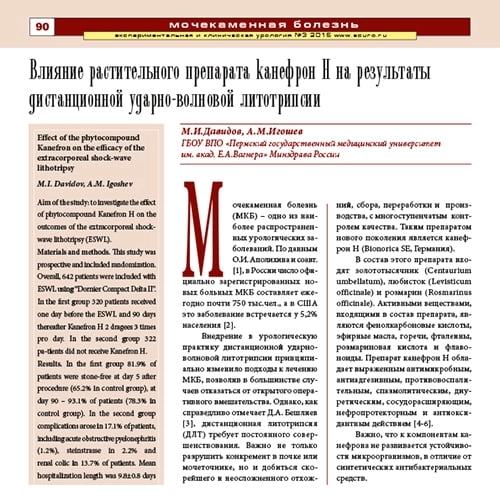 Влияние растительного препарата канефрон Н на результаты дистанционной ударно-волновой литотрипсии