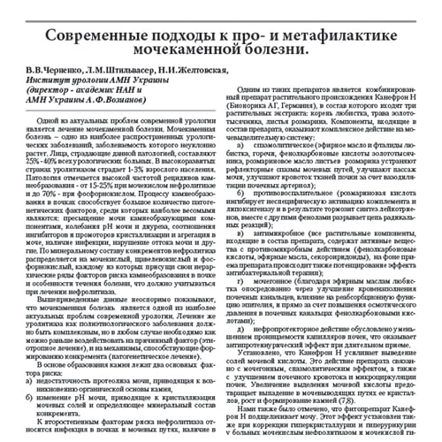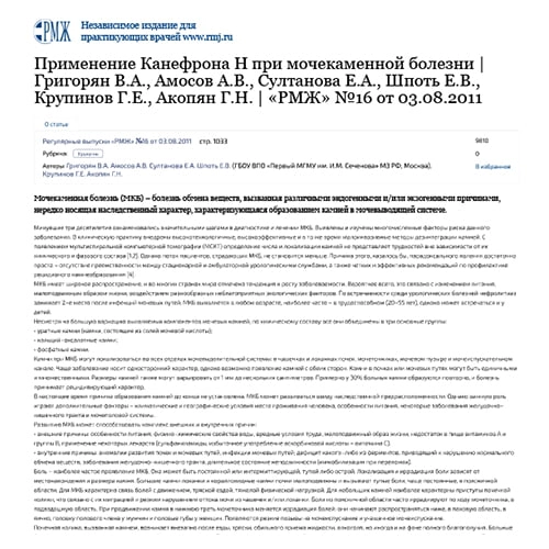 Статьи о применении Канефрон® Н при мочекаменной болезни (МКБ)