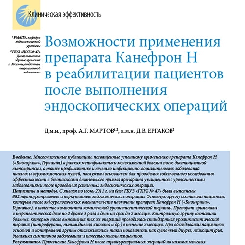 Возможности применения препарата Канефрон Н в реабилитации пациентов после выполнения эндоскопических операций