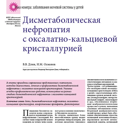 Дисметаболическая нефропатия с оксалатно-кальциевой кристаллурией
