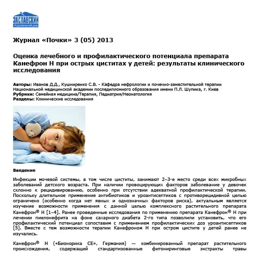 Оценка лечебного и профилактического потенциала препарата Канефрон® Н при острых циститах у детей: результаты клинического исследования
