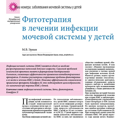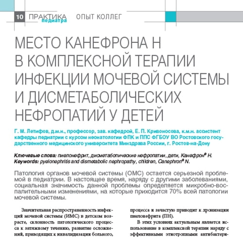 Место Канефрона Н в комплексной терапии инфекции мочевой системы и дисметаболических нефропатий у детей