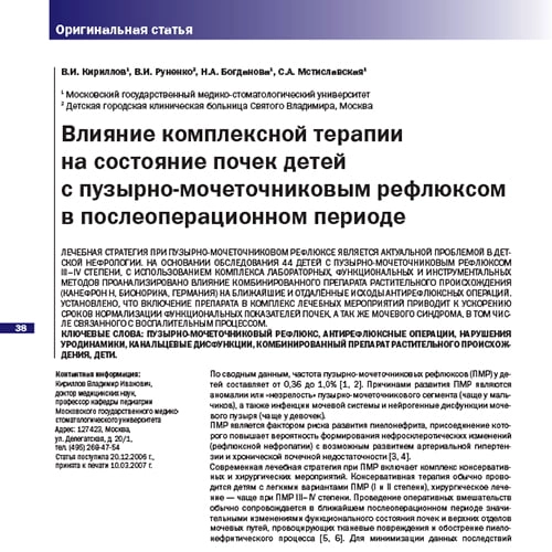 Влияние комплексной терапии на состояние почек детей с пузырномочеточниковым рефлюксом в послеоперационном периоде
