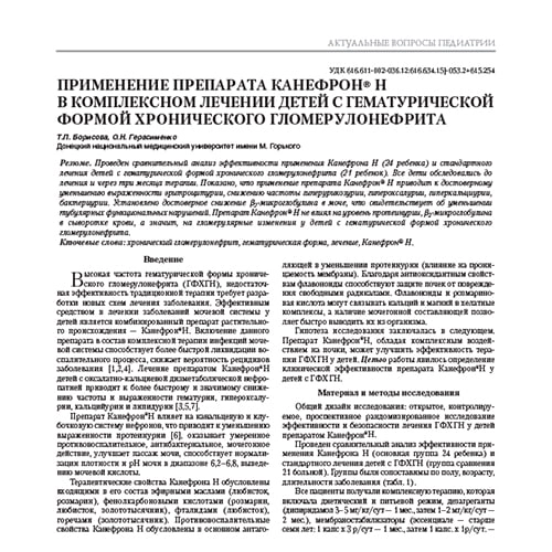 Применение препарата Канефрон® Н в комплексном лечении детей с гематурической формой хронического гломерулонефрита
