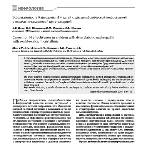 Эффективность Канефрона Н у детей с дизметаболической нефропатией с оксалатно-кальциевой кристаллурией
